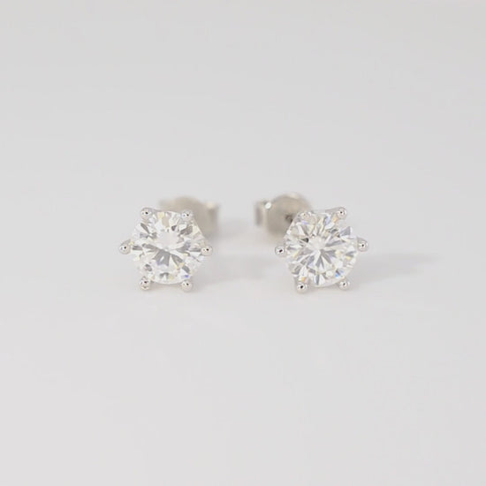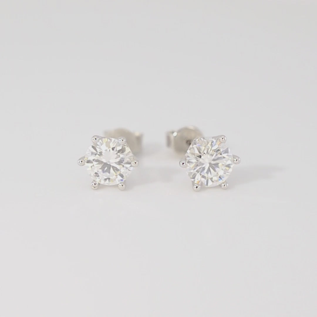 These beautiful 2ctw (1 carat each) moissanite studs deliver clear, eye-catching sparkle in a classic six-prong sterling silver setting. Comfortable, secure, and impressive, they’re a great way to get a luxury look without the high diamond price.