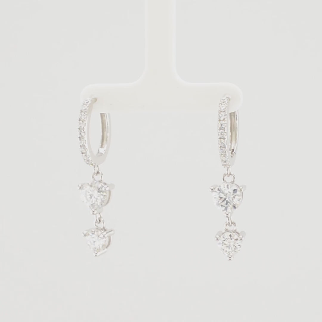 These earrings feature brilliant round-cut moissanite stones set in a genuine sterling silver mounting. Each earring showcases two sparkling moissanites in a graceful drop design, suspended from a sterling silver hoop accented with pavé-set stones. The result is a dazzling pair that combines timeless elegance with modern sparkle — perfect for day-to-night wear.