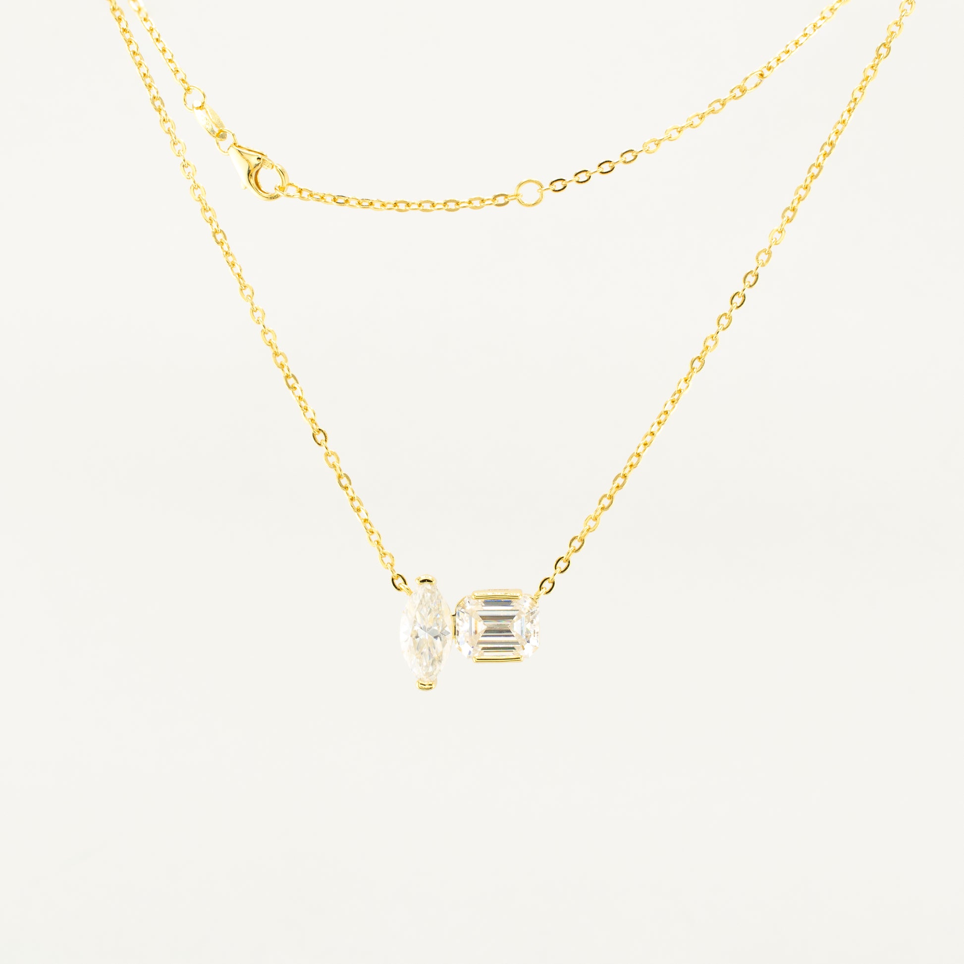 Gold-Plated Sterling Silver Moissanite Pendant Necklace – Marquise & Emerald Cut